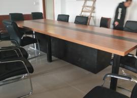 1、桌面:基材采用 25mm 厚高密度板外贴 0.7mm 厚优质防火板饰面,四边采用 2mm 厚 PVC 封边。