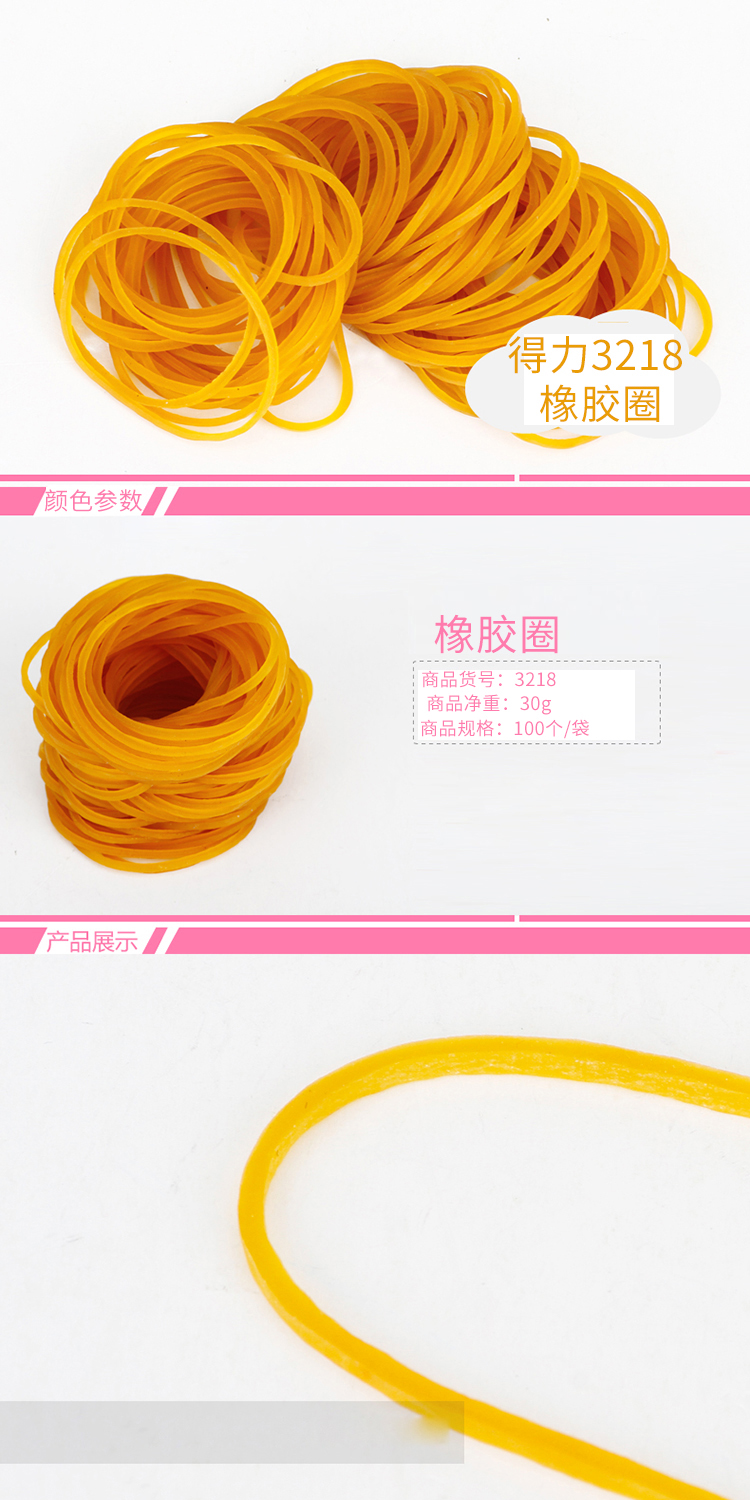 • 商品名称:得力 3218 橡皮筋 橡胶圈 乳胶圈 牛皮筋 30克 办公用品 单包