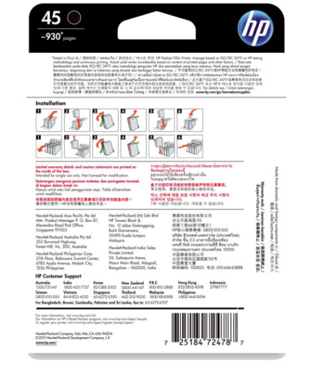 • 商品名称:惠普(HP) 51645AA 45黑色墨盒(适用710c 830c 850c 1280c)