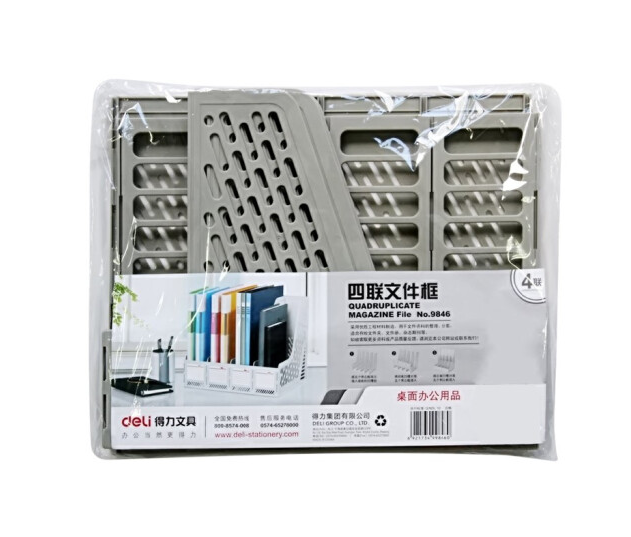 • 商品名称:得力文件座文件架文件栏资料架书架杂志收纳框桌面四栏办公用品 9846四格 黑/灰 随机1个