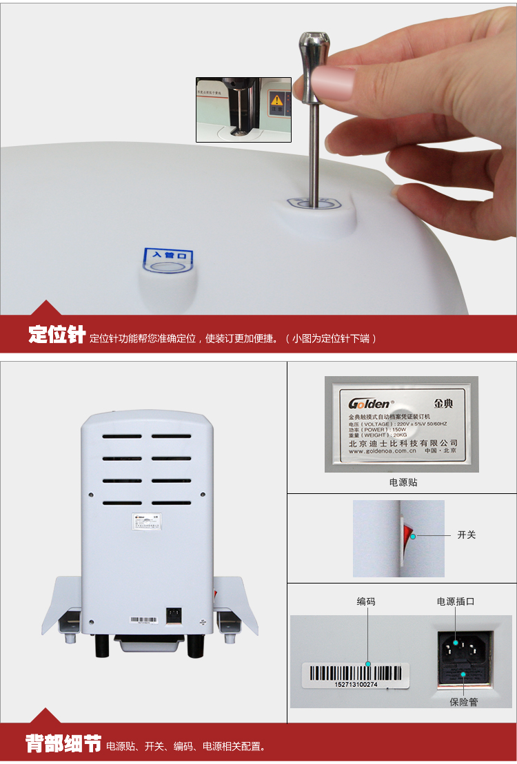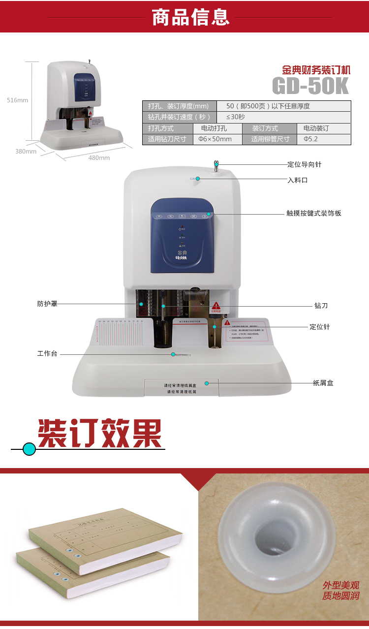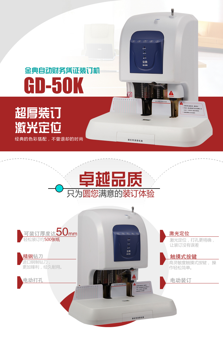 • 商品名称:金典(Golden)GD-50K装订机财务凭证装订机 档案打孔机 激光定位电动打孔
