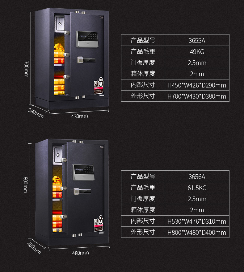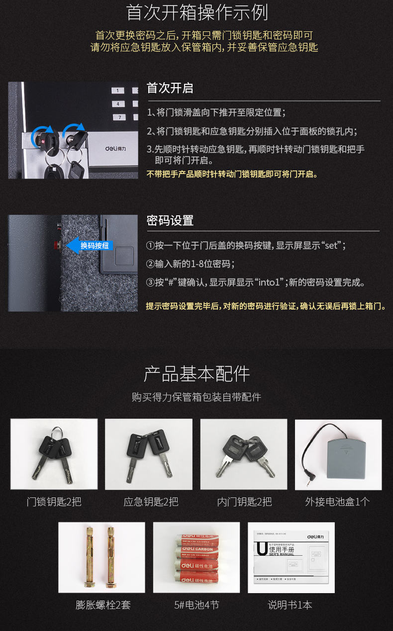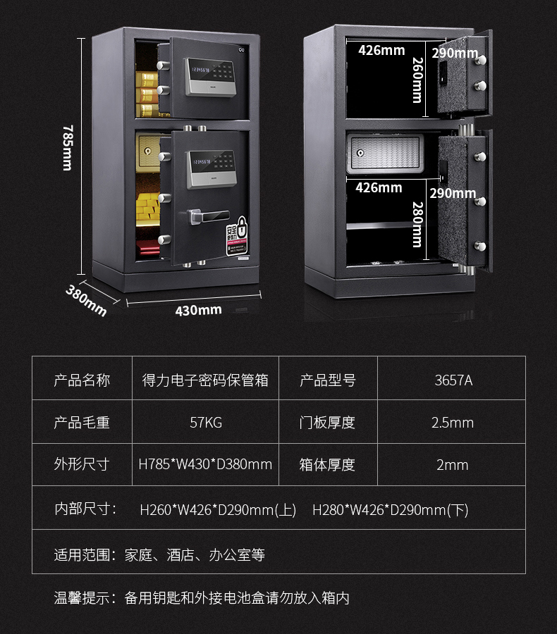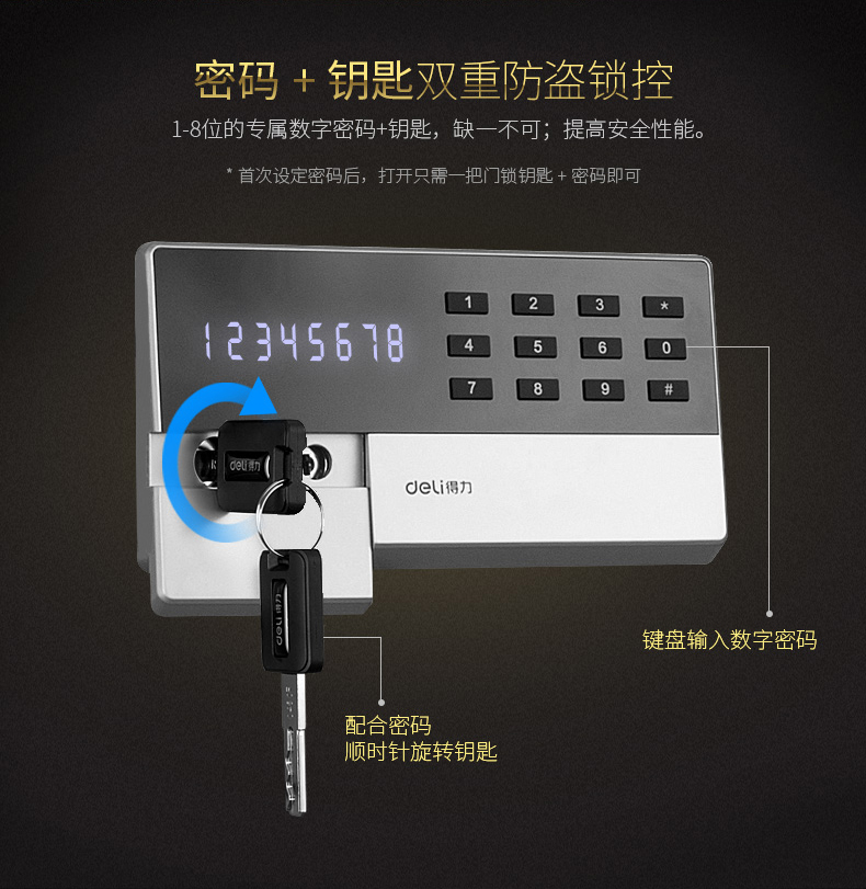 • 商品名称:得力(deli)保险箱/保险柜家用办公系列密码保管柜大型防盗入墙 3657A