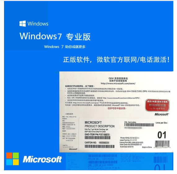 • 商品名称:微软正版win7/Windows7版64位专业版系统
