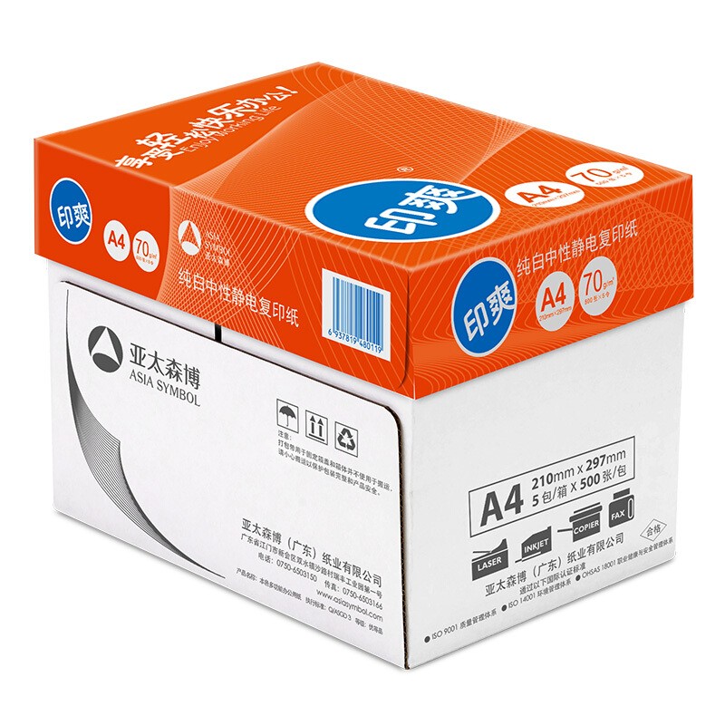 • 商品名称:亚太森博A4复印纸印爽70g打印白纸草稿纸单包500张草稿纸办公用纸整箱5包