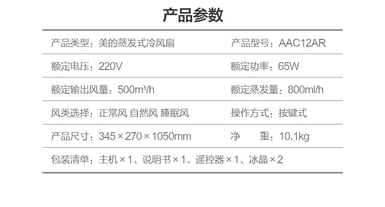 • 商品名称:美的(Midea)空调扇遥控冷风扇冷风机单冷水冷塔扇制冷气器家用静音无叶电风扇小空调扇AAC12AR 白色