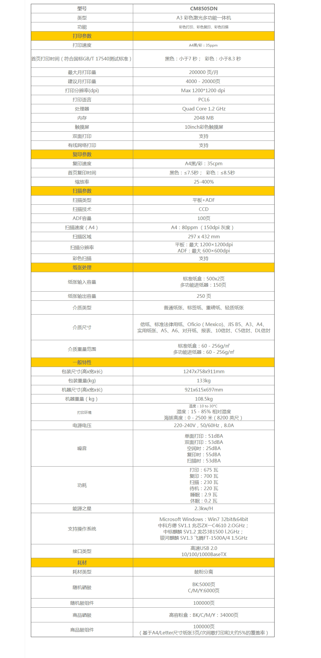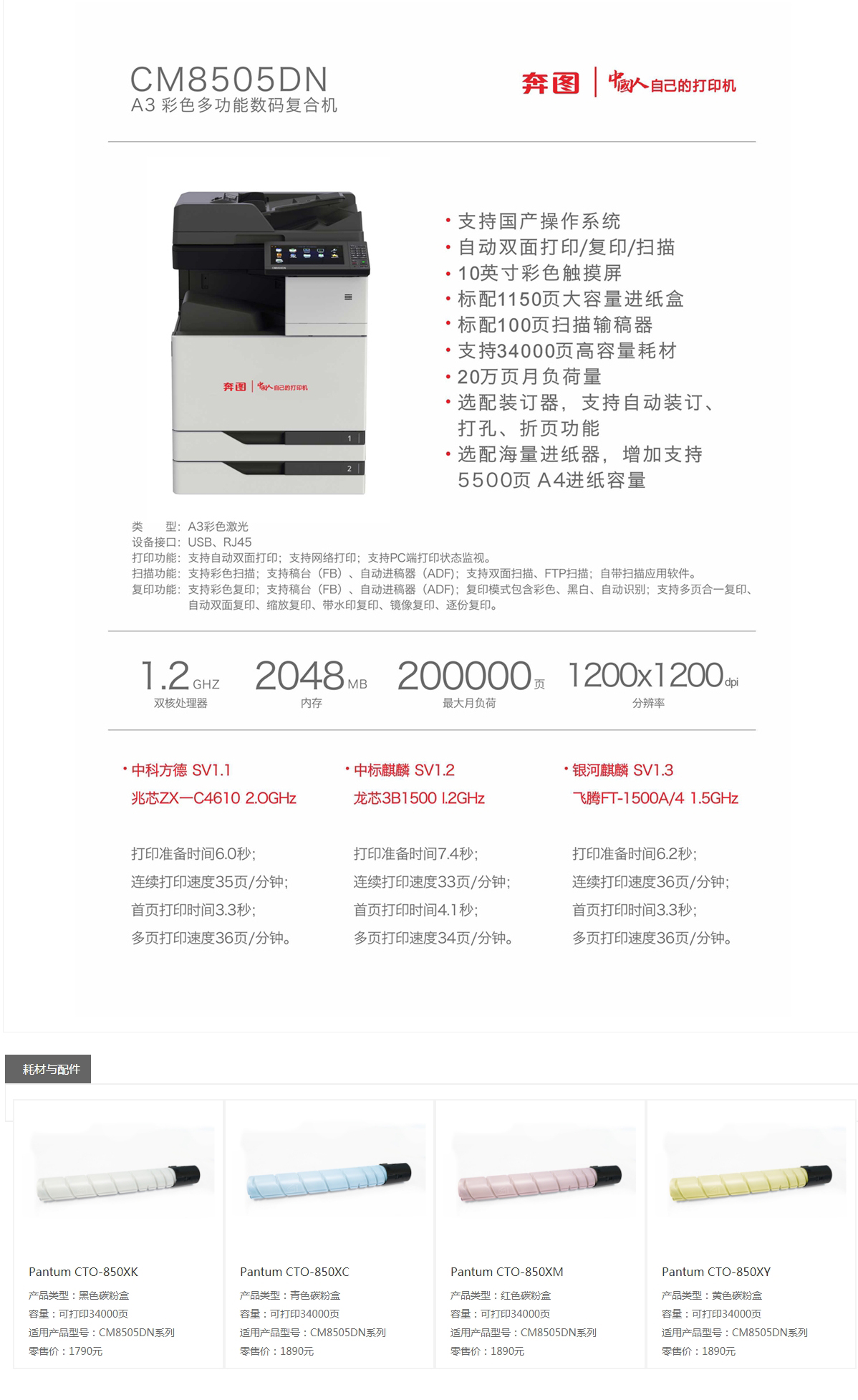 • 商品名称:奔图Pantum CM8505DNA3彩色多功能数码复合机