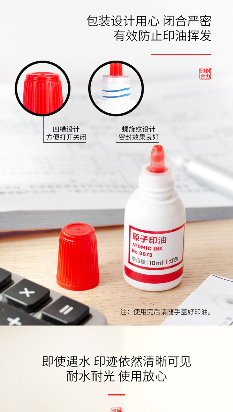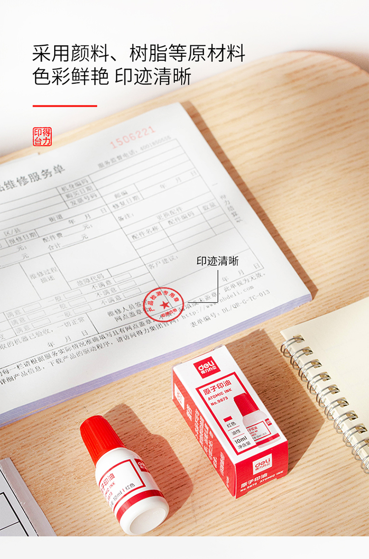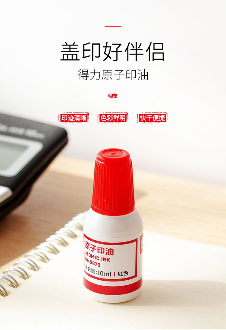 • 商品名称:得力9873 10ml财务印章原子印油 红色