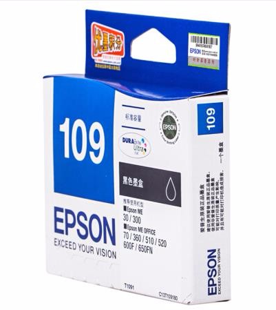 • 商品名称:爱普生(Epson)T1091黑色墨盒 C13T109180(适用ME30/300/360/510/600F/650FN/700FW)