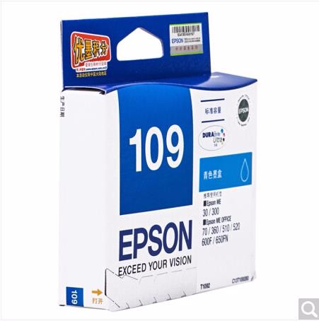 • 商品名称:爱普生(Epson)T1092青色墨盒 C13T109280(适用ME30/300/360/510/600F/650FN/700FW)