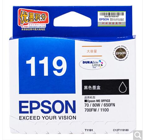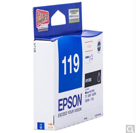 • 商品名称:爱普生(Epson)T1191 大容量黑色墨盒 C13T119180(适用650FN/70/1100)