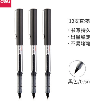 • 商品名称:得力0.5mm直液全针管走珠签字笔