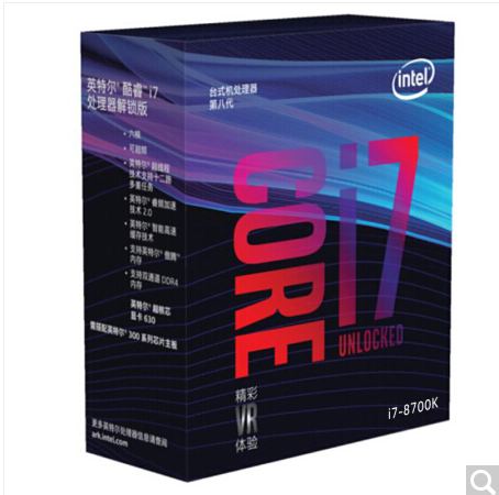 • 商品名称:英特尔(Intel) i7 8700K 酷睿六核 盒装CPU处理器