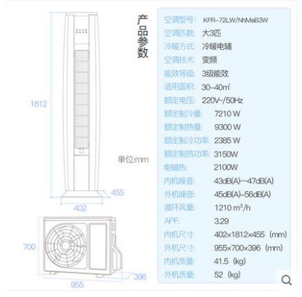 • 商品名称:Gree/格力 KFR-72LW/NhMaB3W 3匹智能冷暖变频客厅空调立式柜机