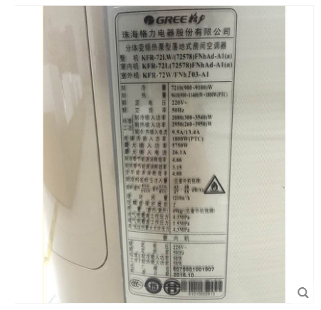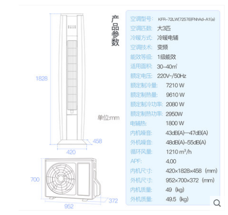 • 商品名称:Gree/格力 KFR-72LW(72578)FNhAd-A1(a)3匹智能变频柜机空调立式