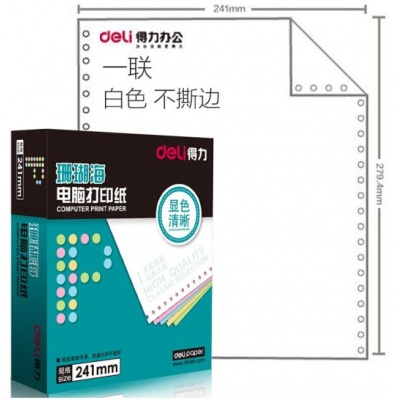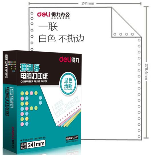 • 商品名称:得力 (deli )珊瑚海白色电脑打印纸S241-1一联整张全白不撕边80列电脑打印纸(色序:全白 1000页/箱)