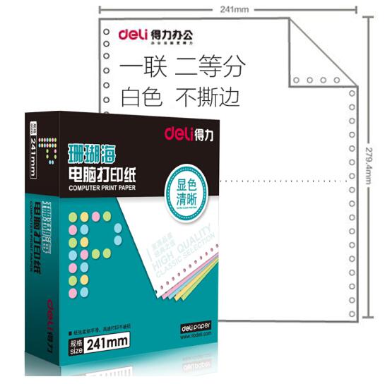 • 商品名称:得力(deli)白色电脑打印纸S241-1-1/2一联二等份整张不撕边(色序:全白 800页/箱)
