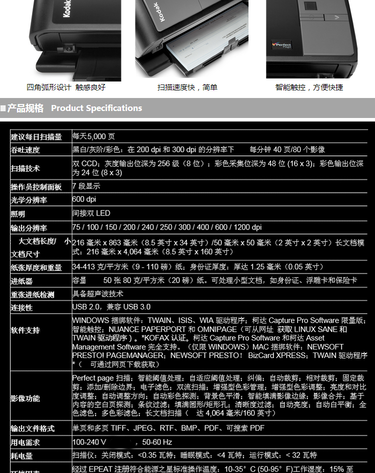 • 商品名称:柯达(KODAK)i2420 双面高速扫描仪 高清A4自动进纸