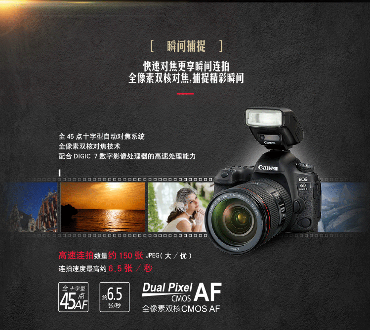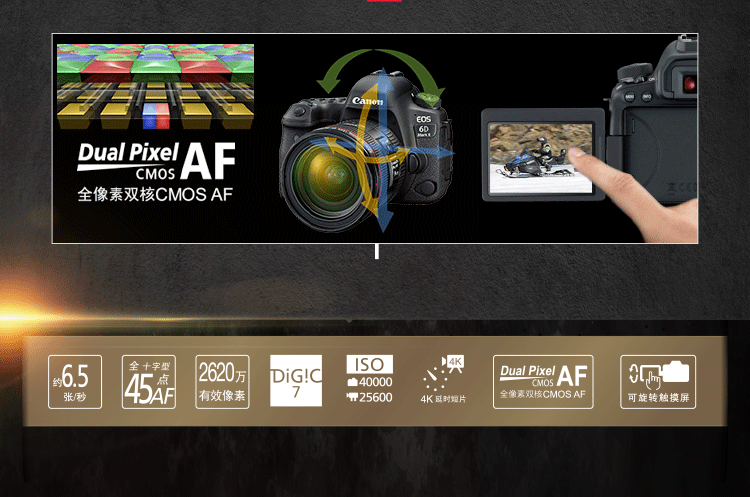 • 商品名称:佳能(Canon) EOS 6D Mark II 单反套机(EF 24-105mm f/4L IS II USM 镜头)送64G卡及相机包