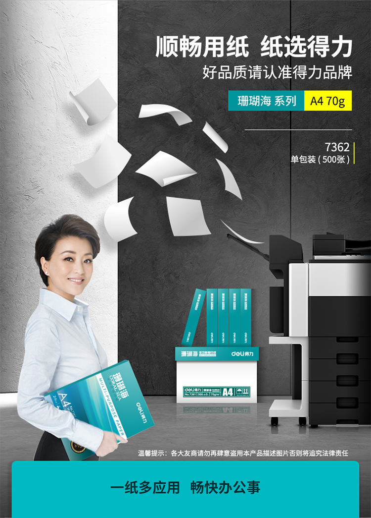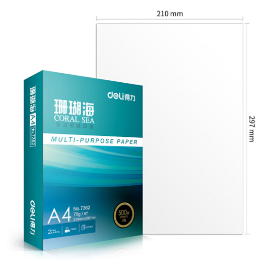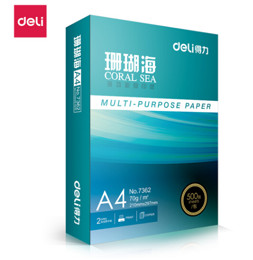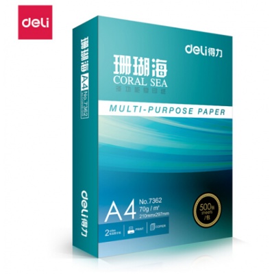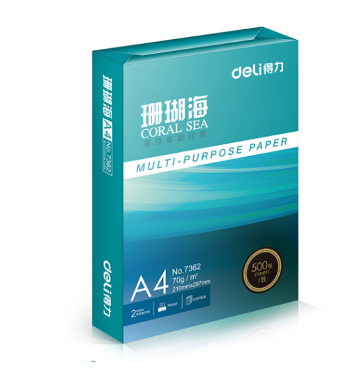 • 商品名称:得力(deli)珊瑚海1包装70gA4复印纸 500张/包 5包/箱