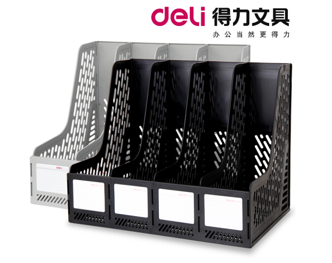 • 商品名称:得力文件座文件架文件栏资料架书架杂志收纳框桌面四栏办公用品 9846四格 黑/灰 随机1个