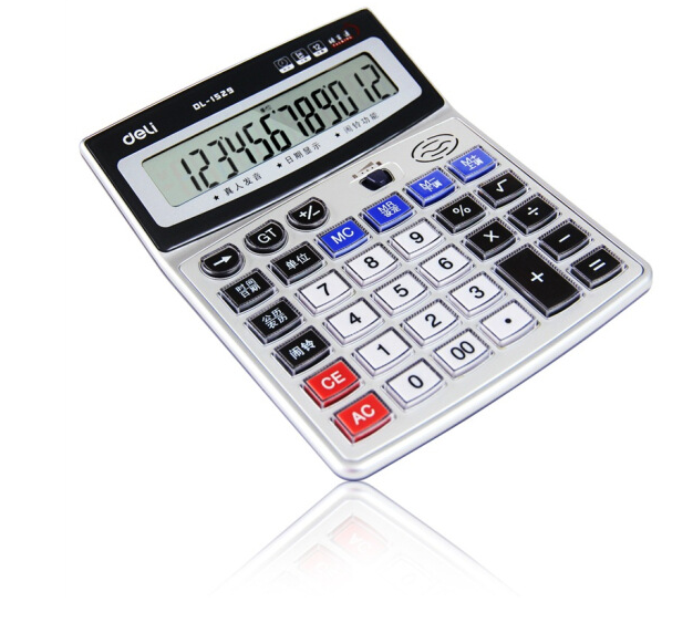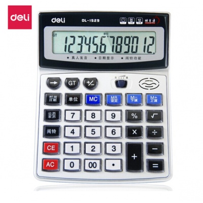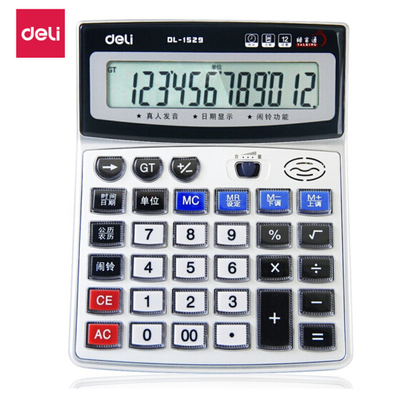 得力(deli)水晶按键12位记忆储存语音计算器 大屏音乐闹钟语音计算机 银灰1529