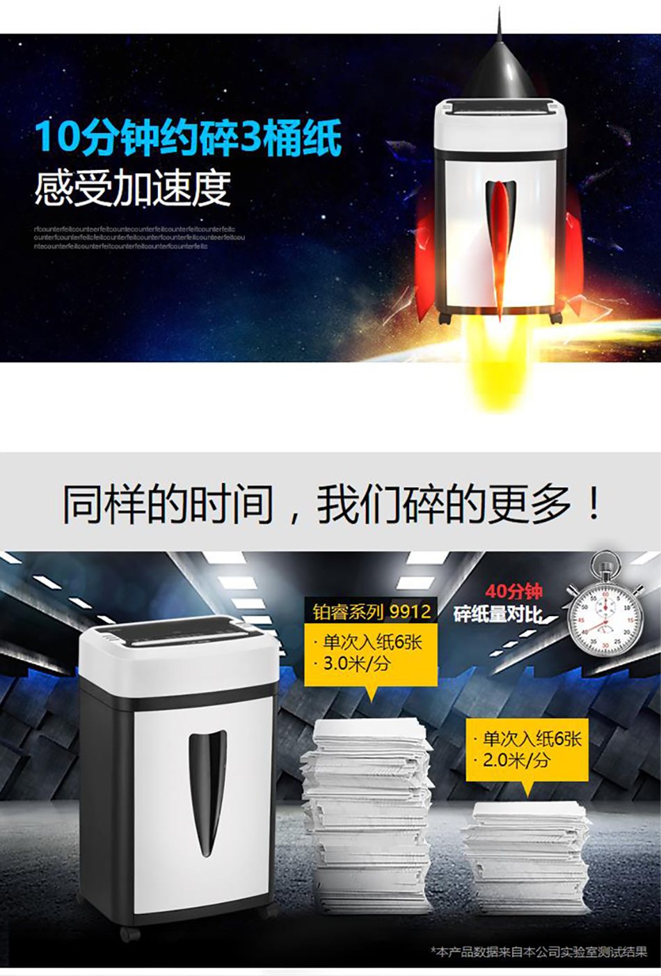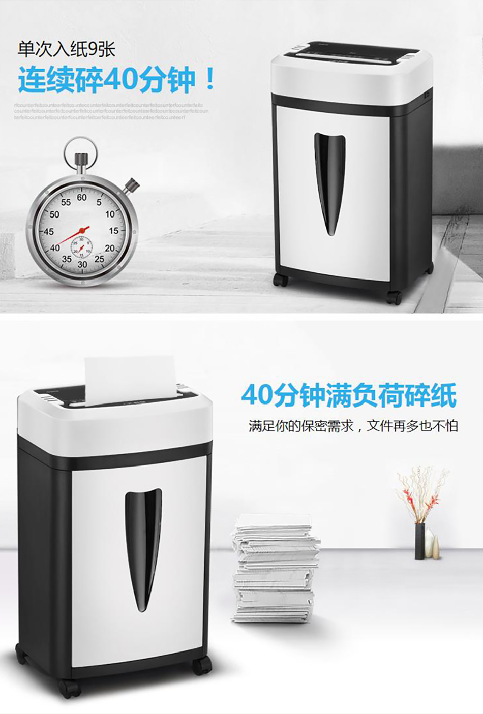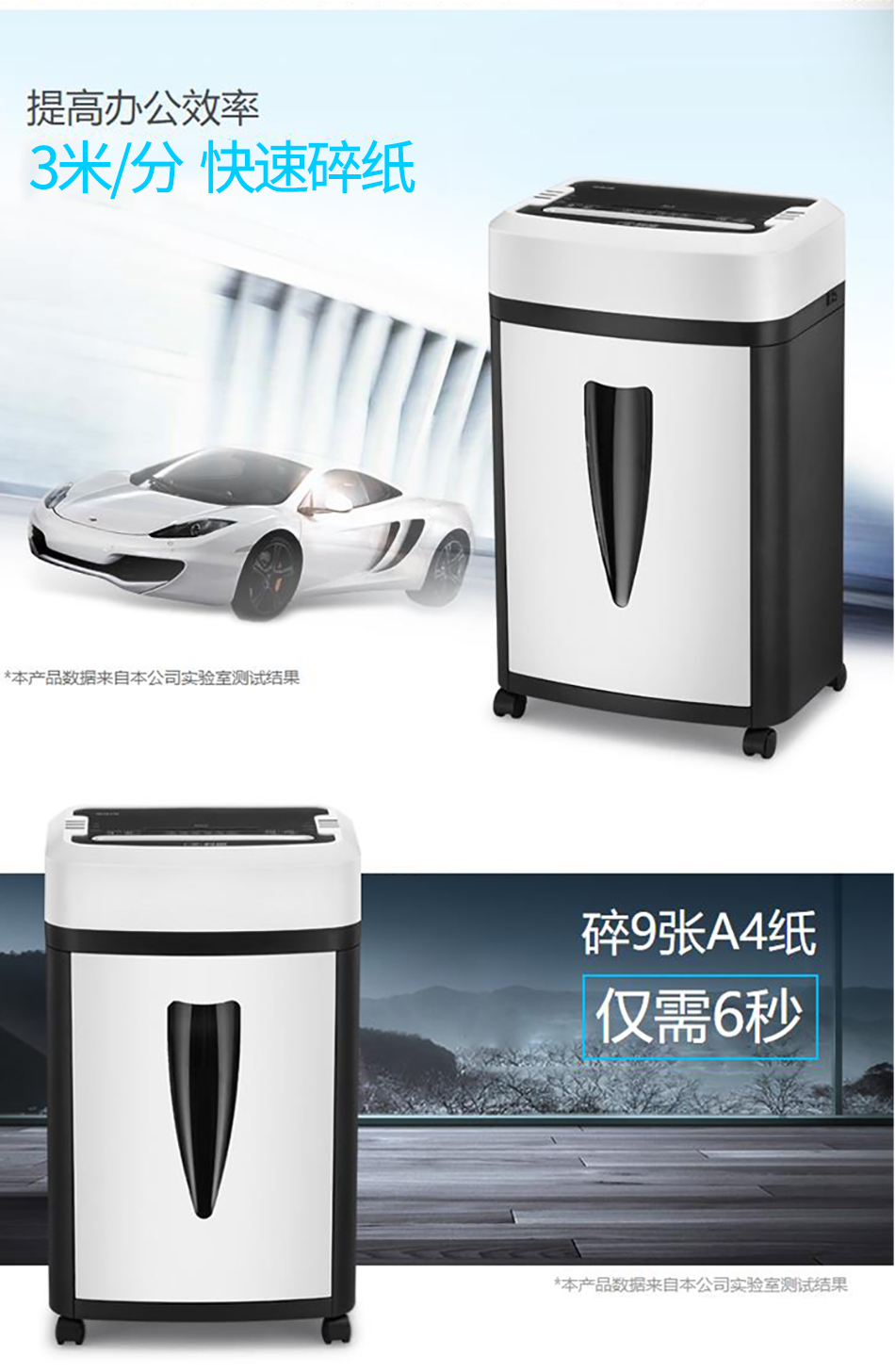 • 商品名称:科密(comet)碎纸机 德国5级保密 长时间高速商用办公碎文件卡光盘粉碎机 铂睿系列 9915 碎40分钟 碎9张 2*6mm 25L容量