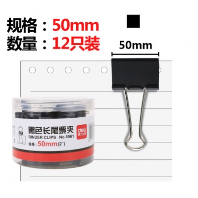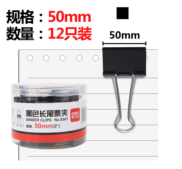 • 商品名称:得力 Deli 8561 大号黑色长尾夹 50mm