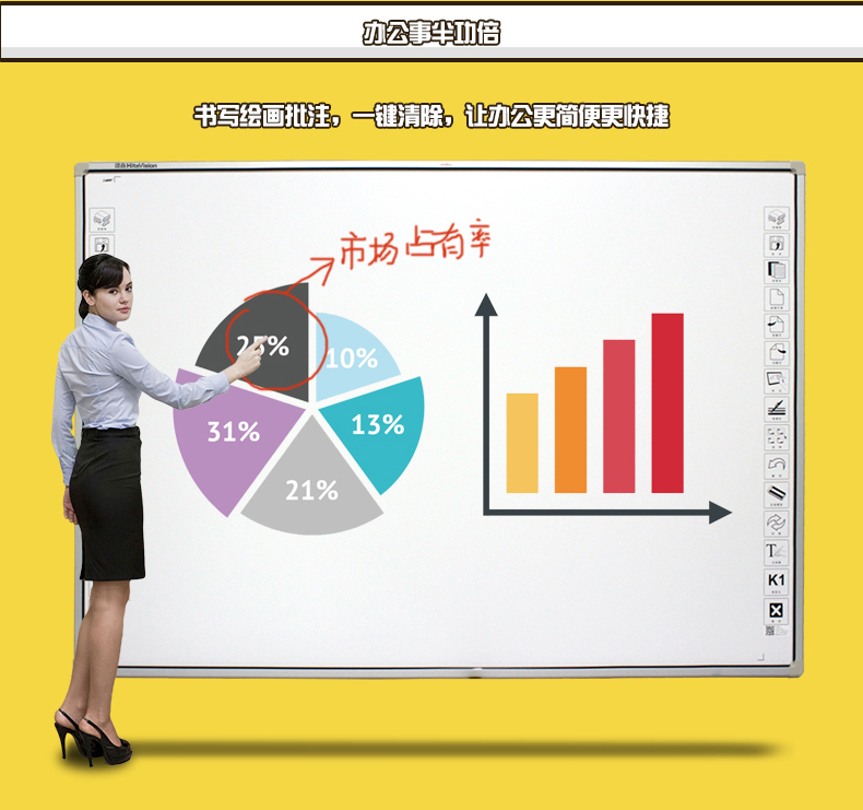 • 商品名称:鸿合红外互动式电子白板交互式办公教学一体机幼儿园触摸屏HV-I583 HV-IS83+短焦投影机+壁挂架