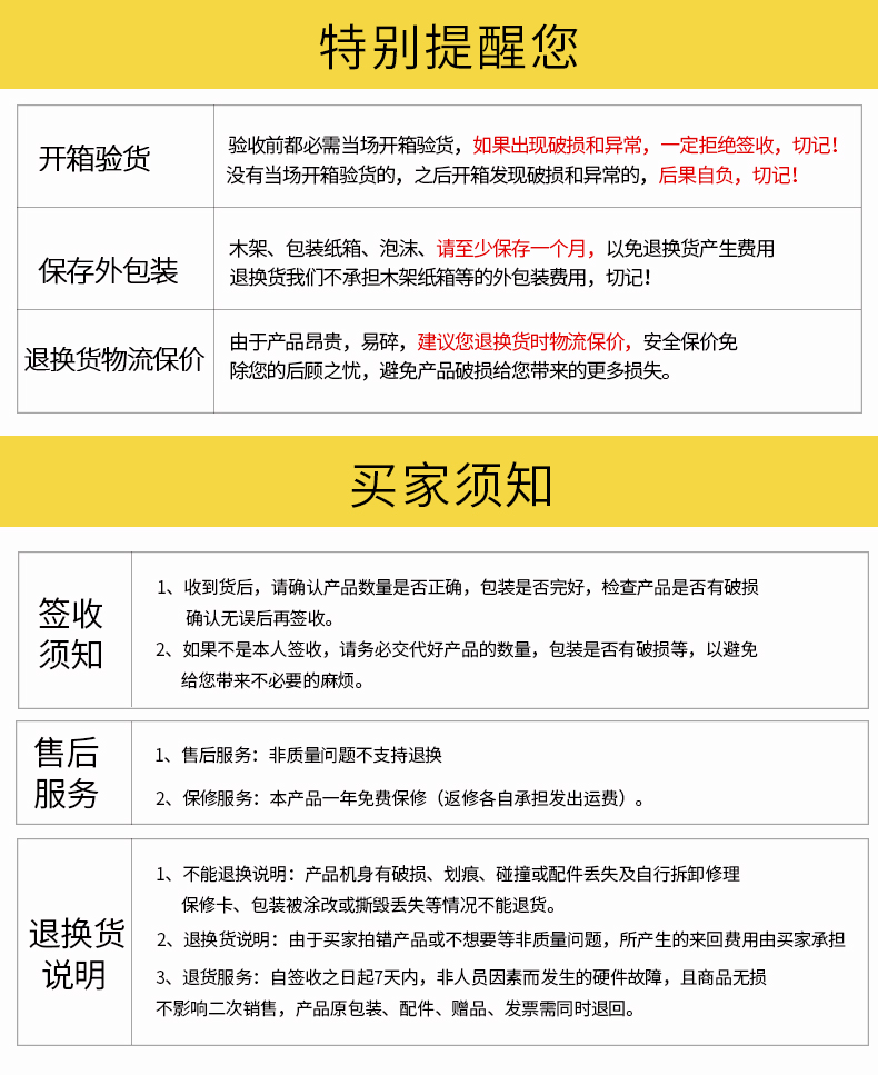 换货处理周期:自接收到问题商品之日起 15 日之内为您处理完成;