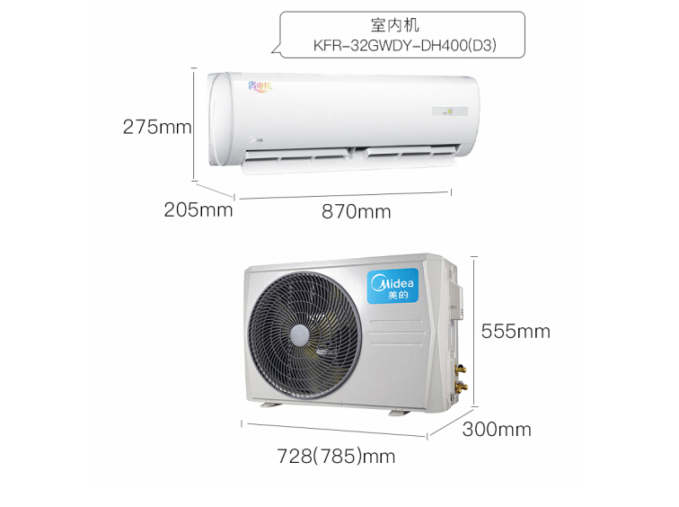 • 商品名称:美的(Midea)1.5匹 定速冷暖 空调挂机 三级能效 KFR-35GW/DY-DH400(D3)
