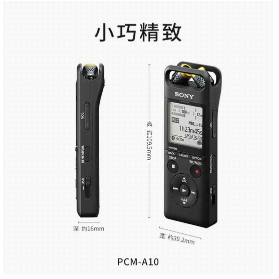 索尼(SONY) PCM-A10 录音笔 专业高清降噪正品手机蓝牙远程操作大容量mp3无损音乐播放器 PCM-A10 可蓝牙收听