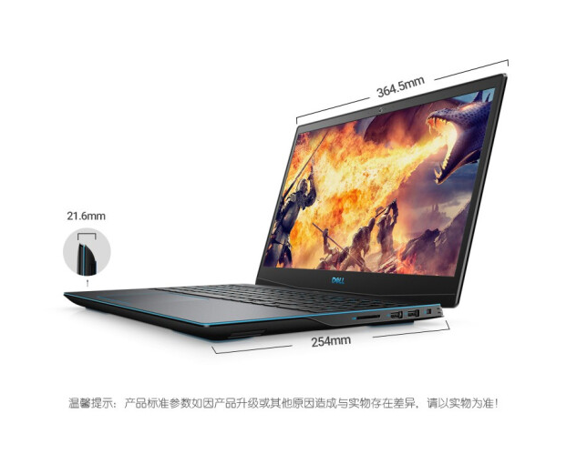 戴尔(DELL) 灵越游匣G3 3590 15.6英寸高清窄边框九代标压 独显4G I5-9300H 8G内存 1T机械+128G固态PCIe