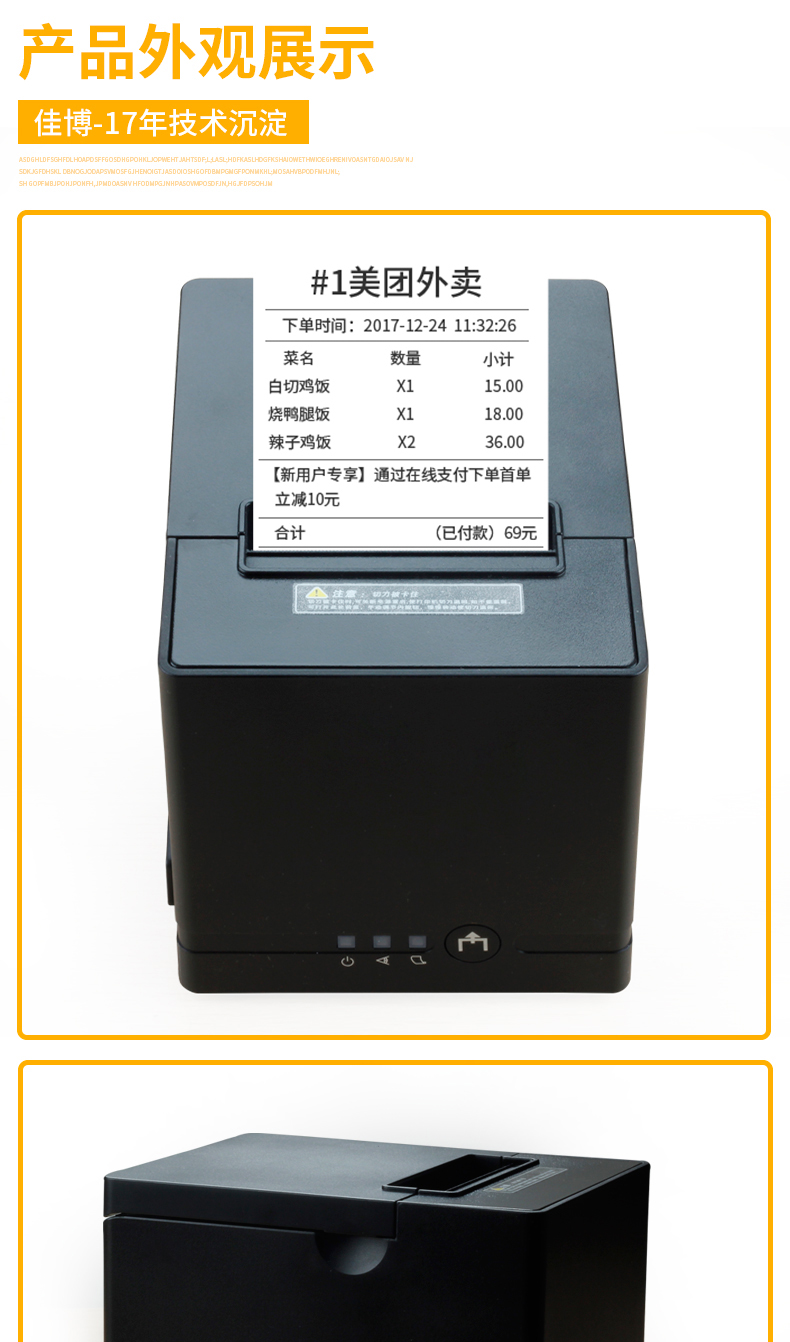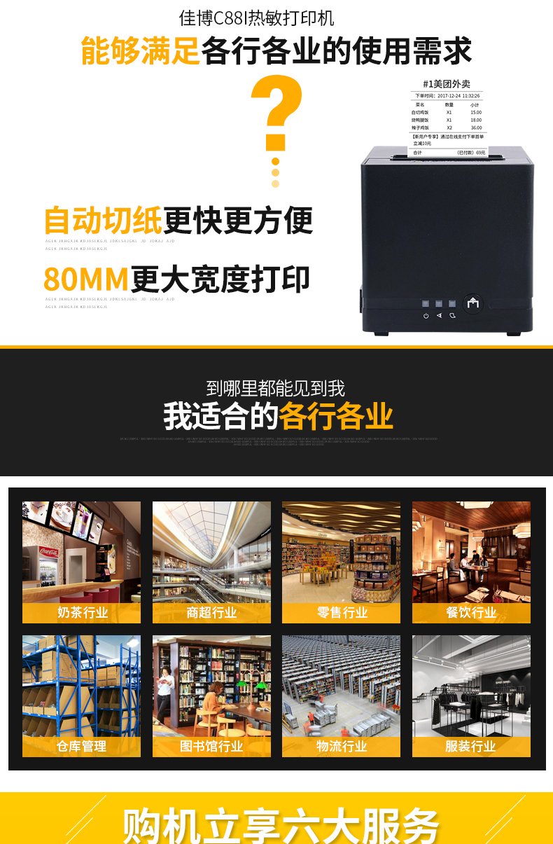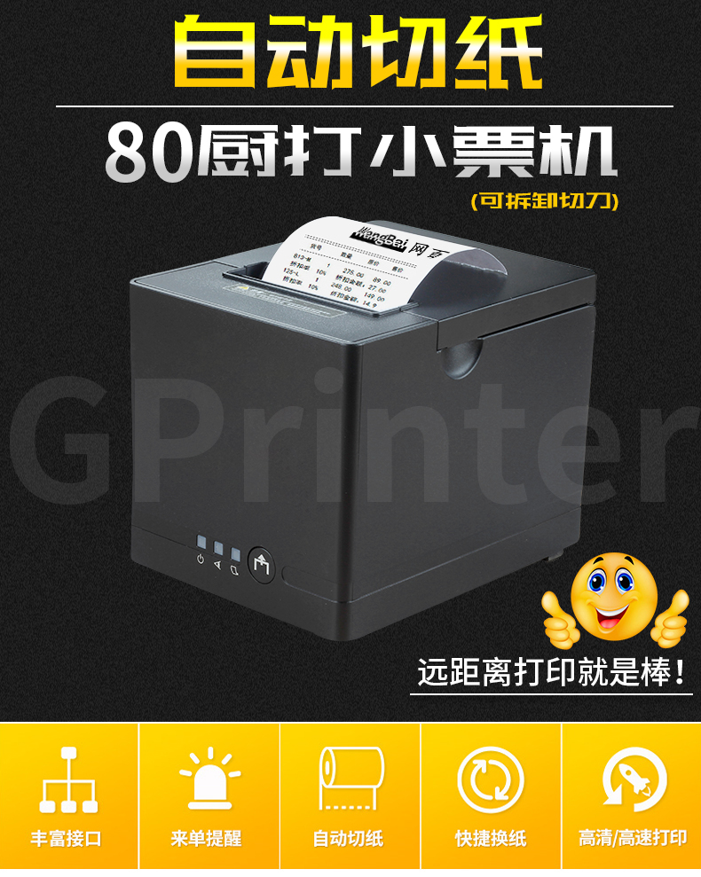 • 商品名称:佳博GP-C881收银小票据热敏打印机80mm餐饮美团外卖厨房打印机 网口 自动切纸 新品C88I(USB接口)
