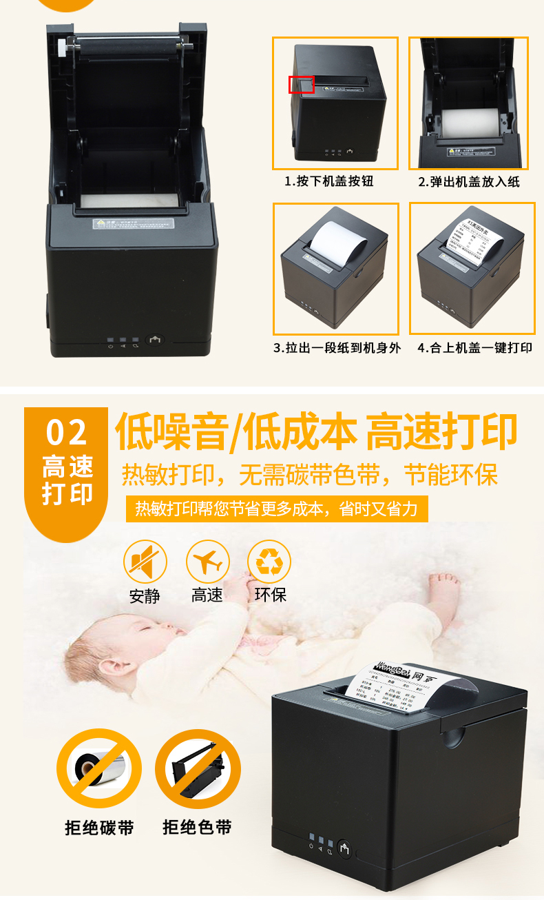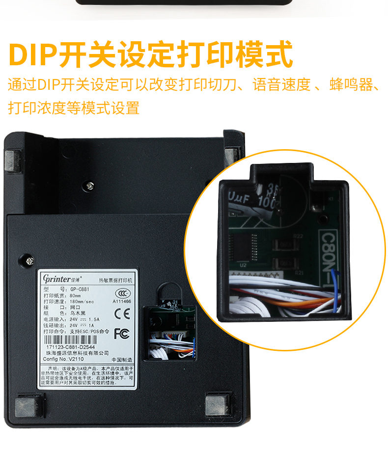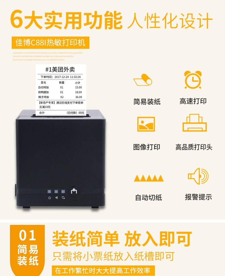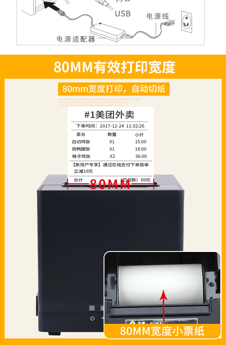 • 商品名称:佳博GP-C881收银小票据热敏打印机80mm餐饮美团外卖厨房打印机 网口 自动切纸 新品C88I(USB接口)