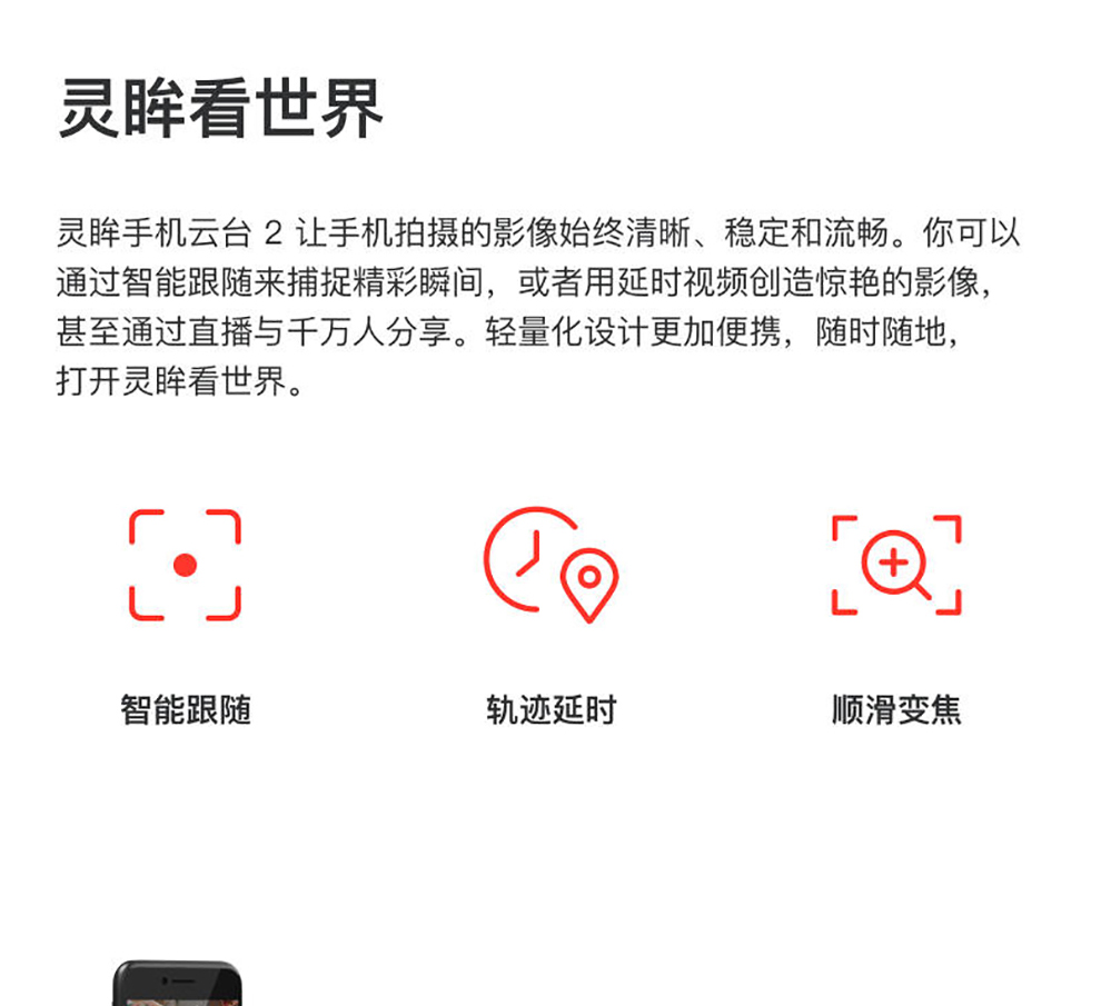 • 商品名称:大疆(DJI) 手机云台 灵眸Osmo Mobile 2 防抖手机云台2 手持稳定器