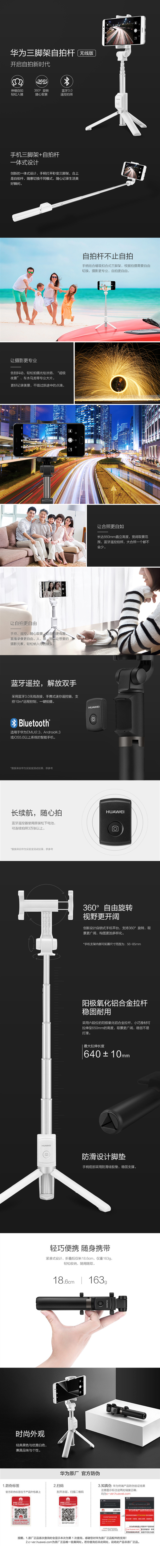 • 商品名称:华为 HUAWEI 三脚架无线自拍杆 防手抖蓝牙遥控 小巧便携 短视频/直播支架 安卓/苹果通用 360°旋转 黑色AF15