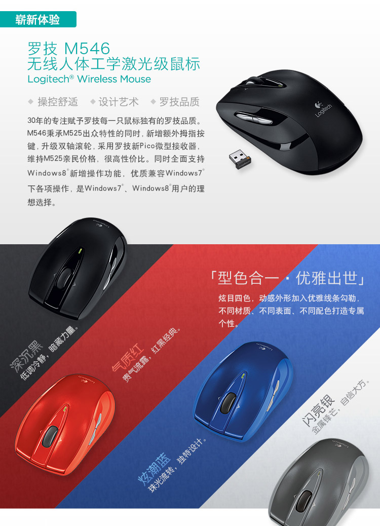 • 商品名称:罗技 (Logitech) M546无线鼠标 USB办公家用鼠标 笔记本台式机电脑鼠标