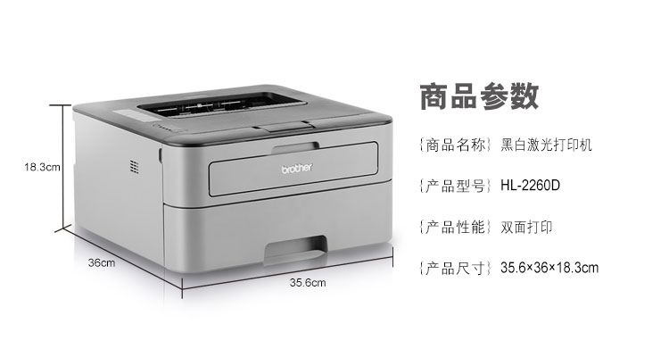 • 商品名称:兄弟(brother)HL-2260D 黑白激光打印机 (双面打印)