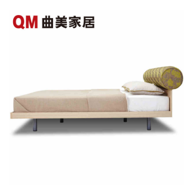 QM曲美家居 布艺双人床可拆洗 海绵软包板木床头钢网床架简约现代北欧风卧室家具 橡木色 1.8*2.0