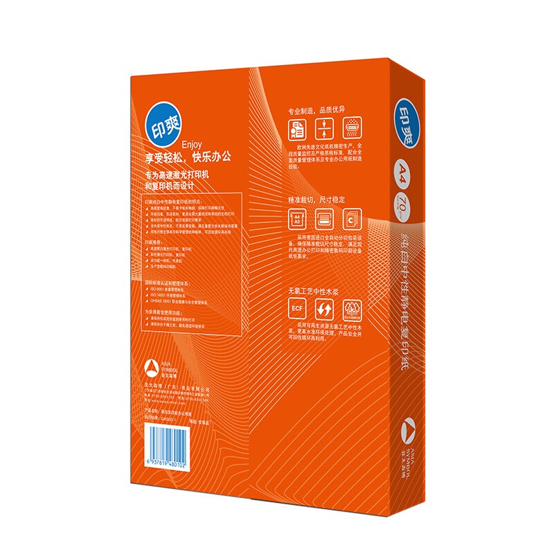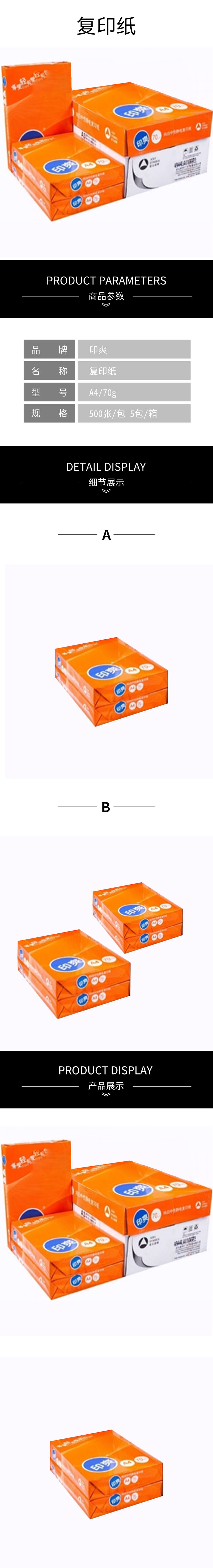 • 商品名称:亚太森博A4复印纸印爽70g打印白纸草稿纸单包500张草稿纸办公用纸整箱5包
