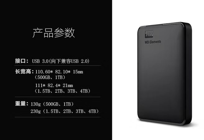 • 商品名称:西部数据(WD)Elements新元素 移动硬盘4t 2.5英寸