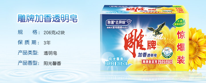 • 商品名称:雕牌加香透明皂206g(2块装)