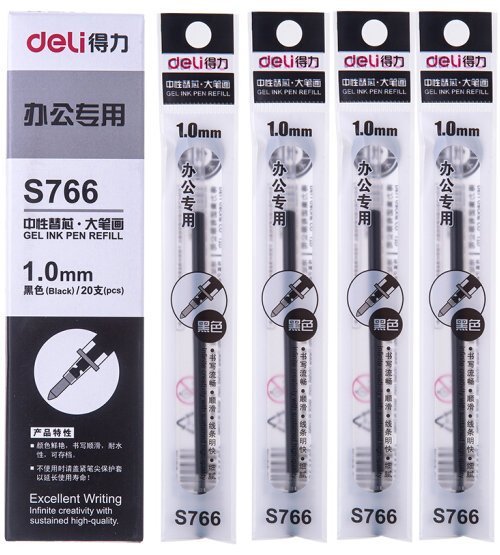 • 商品名称:得力(deli)1.0mm黑色中性笔签字笔替芯 子弹头20支/盒