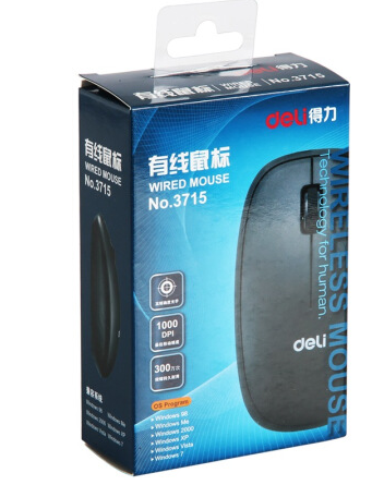• 商品名称:得力(deli)USB有线鼠标 光感灵敏办公鼠标 即插即用 经典雅黑