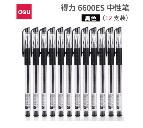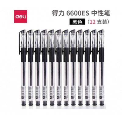 • 商品名称:得力中性笔标准子弹头 0.5mm 水笔 签字笔 6600ES黑色12支装