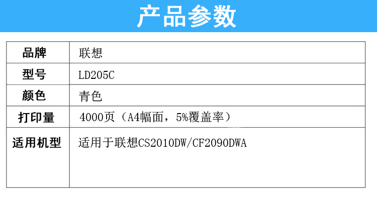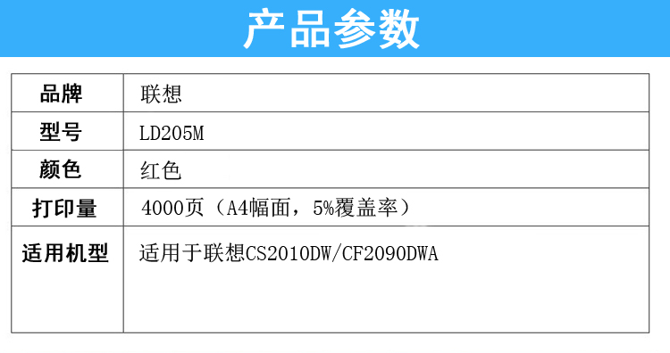 • 商品名称:联想(Lenovo) LD205原装彩色硒鼓适用于CS2010DW/CF2090DWA LD205C青色硒鼓黄色硒鼓红色硒鼓