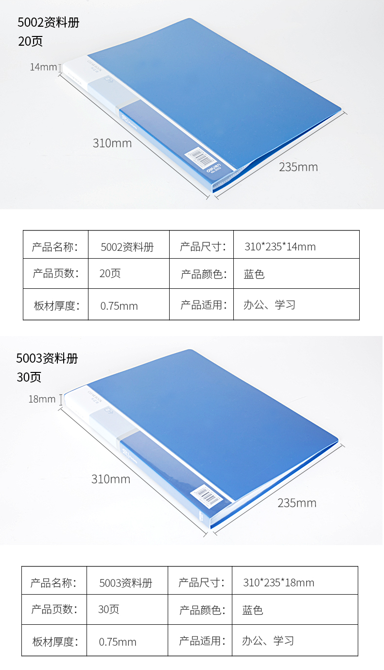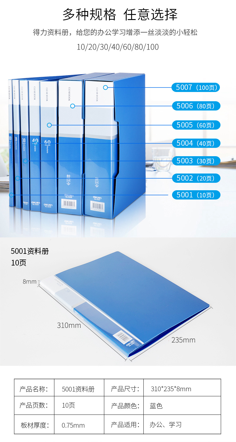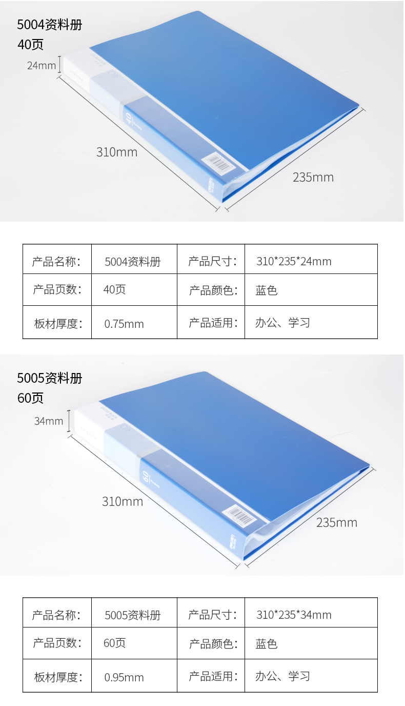 • 商品名称:A4透明插页袋 资料册60页 A4整理档案夹袋
