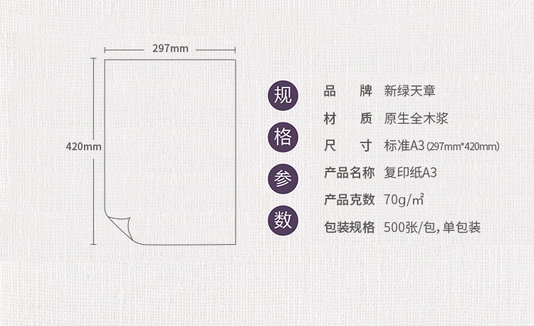 • 商品名称:天章(TANGO)新绿天章70gA3复印纸 单包装 500张