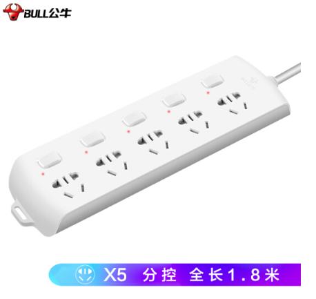 • 商品名称:公牛(BULL)新国标分控插座/插线板/插排/排插/接线板/拖线板 GN-B2053 5位分控全长1.8米 独立开关