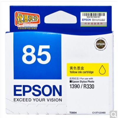 • 商品名称:爱普生(Epson)T0854(T1224) 黄色墨盒 C13T122480(适用PHOTO 1390 R330)
